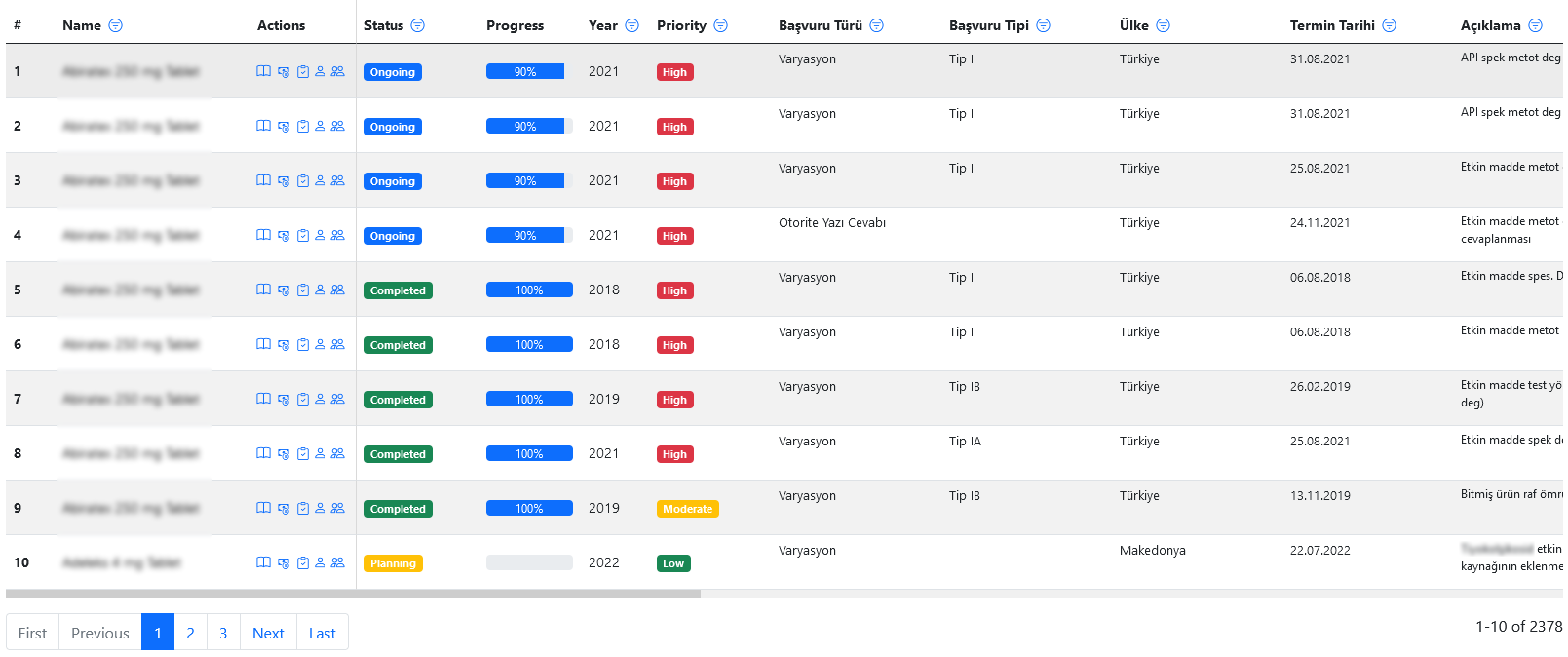 Proje tipine özel parametreler tanımlayarak hangi parametreyi hangi kullanıcıların ve/veya ekiplerin görüp değiştirebileceğini seçebilirsiniz. Projelerinizi kompakt bir tabloda görür ve istediğiniz parametrelere göre süzebilirsiniz. Şirketin genel durumunu gereksiz detaylara boğulmadan incelersiniz.