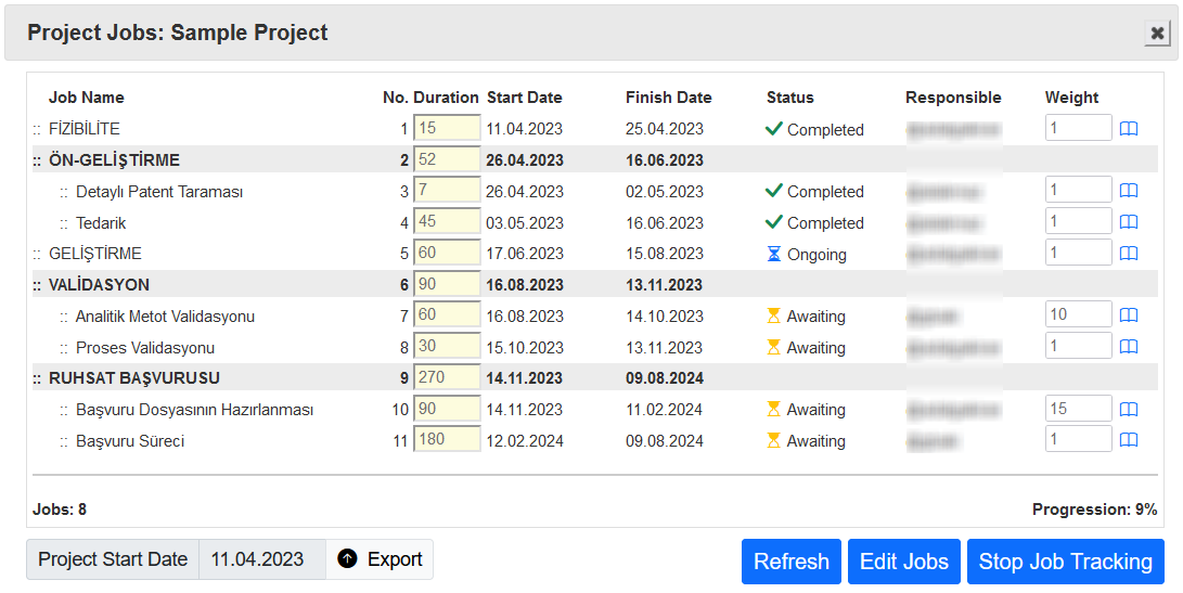 Kritik olduğunu düşündüğünüz projeleriniz için detaylı iş akışları oluşturabilir, hangi işlerin hangi tarihlerde tamamlandığını veya tamamlanacağını görebilirsiniz. İşlere ilgili tarihlerde hatırlatma yapılacak sorumlu kişileri atayabilir, özet tablodaki proje tamamlanma yüzdesinin otomatik hesaplanması için ağırlık katsayıları belirleyebilir, notlar ikonuna tıklayarak mesaj panosuna o işle ilgili notlar ekleyebilirsiniz.