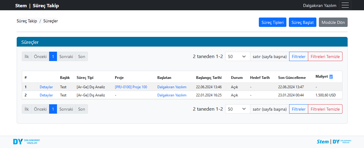 - Süreçlerinizi Proje Yönetim Modülü ile entegre şekilde yürüterek projelerinizin süreç listesini ve harcama istatistiklerini görün